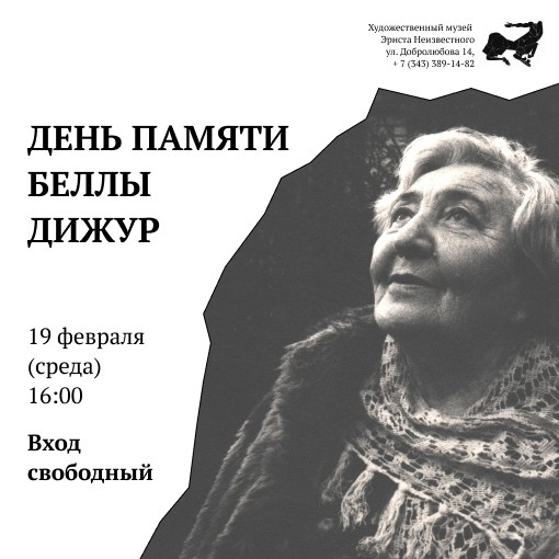 19 февраля 2025 года в Художественном музее Эрнста Неизвестного состоится День памяти Беллы Дижур (1903-2006) – известной поэтессы и писательницы, матери скульптора Эрнста Неизвестного.