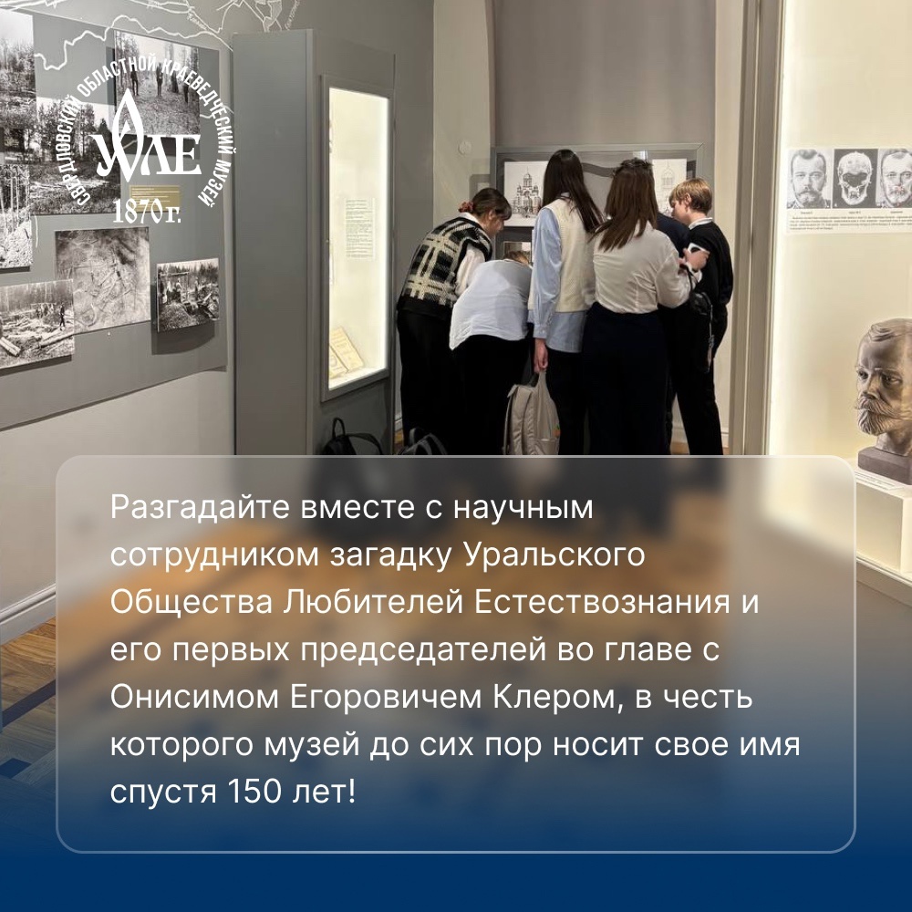 Разгадайте вместе с научным сотрудником загадку Уральского Общества Любителей Естествознания и его первых председателей во главе с Онисимом Егоровичем Клером, в честь которого музей до сих пор носит свое имя спустя 155 лет.