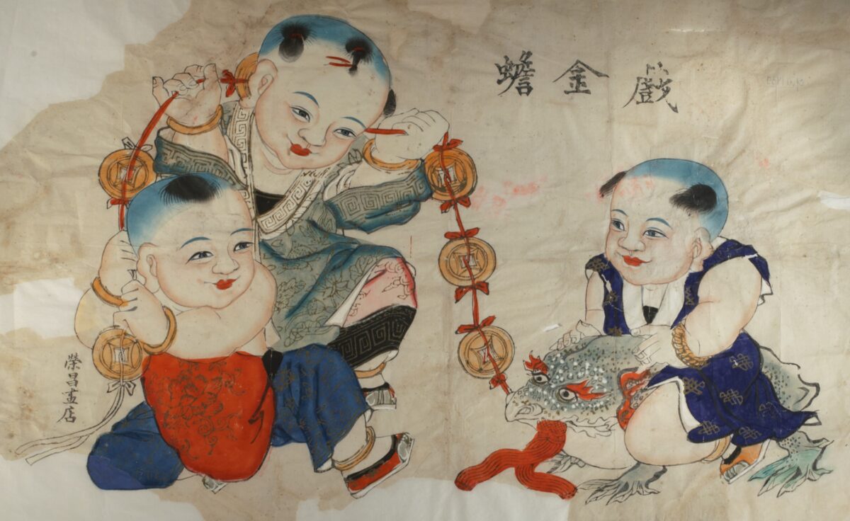 Няньхуа долгое время называли китайским лубком: яркие печатные картины небольшого формата массово тиражировались в преддверии Нового года. На изображениях встречались не только строгие божества, но и радостные малыши с необычными прическами, чиновники, спускающиеся с небес, чудо-деревья, но которых растут монеты, и трехлапые жабы. Чаще всего эти фигуры были ребусом, за которым пряталось пожелание богатства, знатности или здоровья. И каждая деталь в такой картине несла определенный смысл.