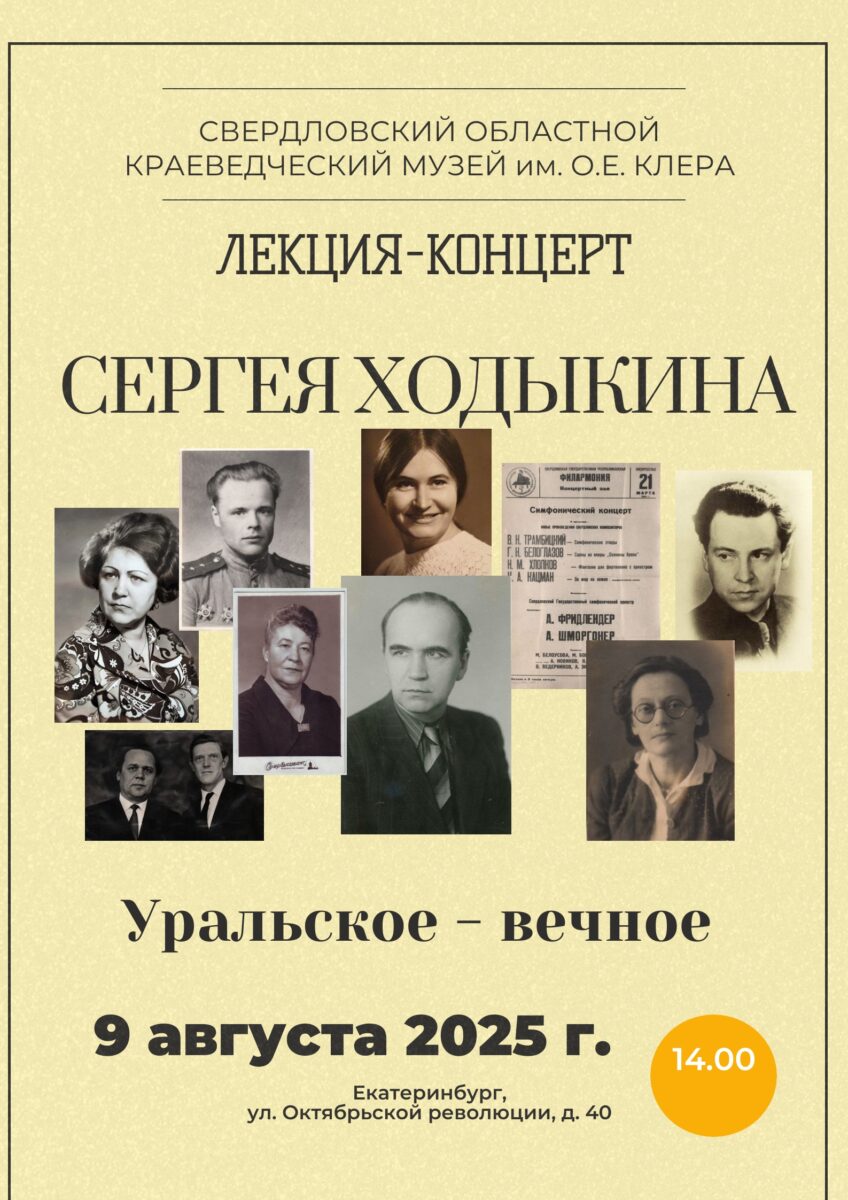 Приглашаем вас окунуться в мир уральской музыки на уникальном мероприятии, где лекция переплетается с концертным исполнением. Сергей Ходыкин, композитор и исследователь, проведет вас по страницам истории музыки Урала, представляя творчество самобытных композиторов, вдохновленных красотой и суровостью родного края.