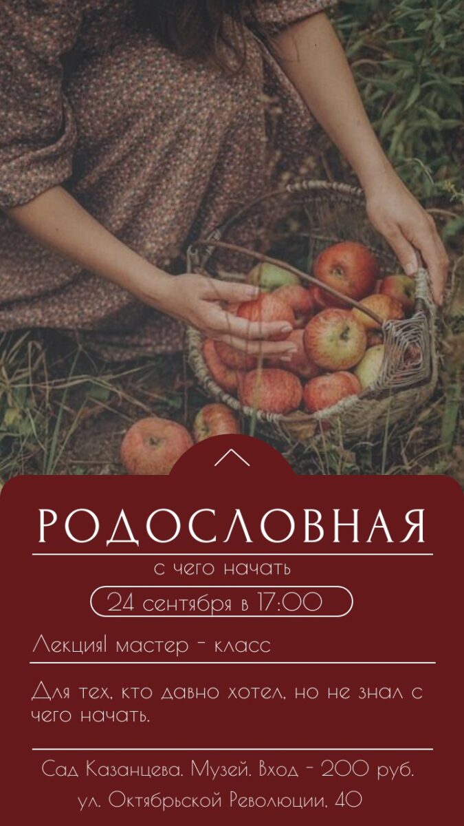В результате нашей встречи каждый участник собственноручно создаст свою первую родословную, сможет получить ответы на свои вопросы и самое главное, простроит дальнейшие шаги в восстановлении своего родословного древа.