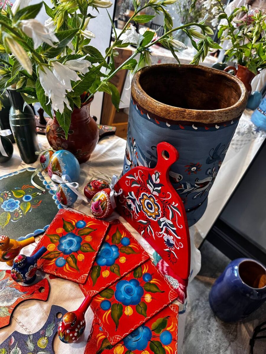На ждёт крутая фото-зона а-ля рюс, угощения, теория и практика росписи. Каждый уйдёт домой с уникальным изделием