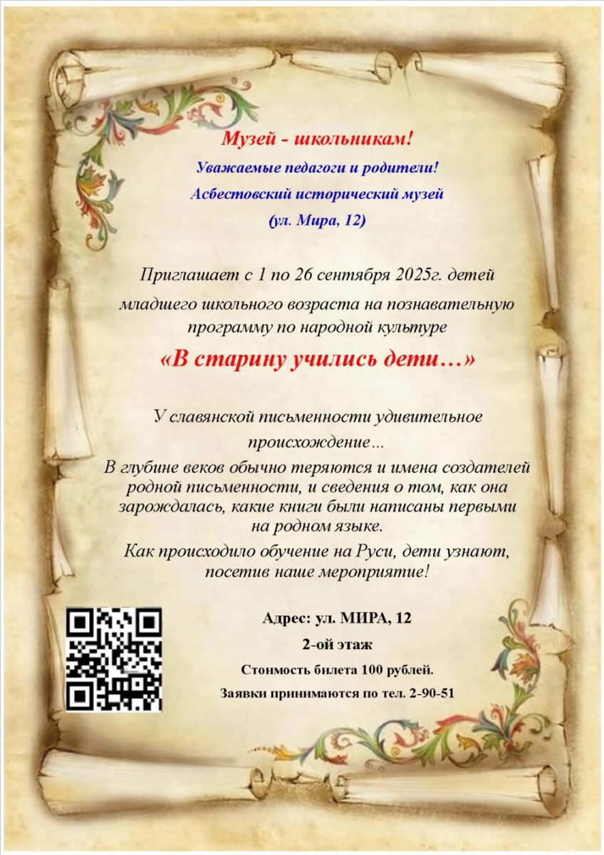 3 сентября 2025 года в Асбестовском историческом музее состоялась познавательная программа » В старину учились дети…»!