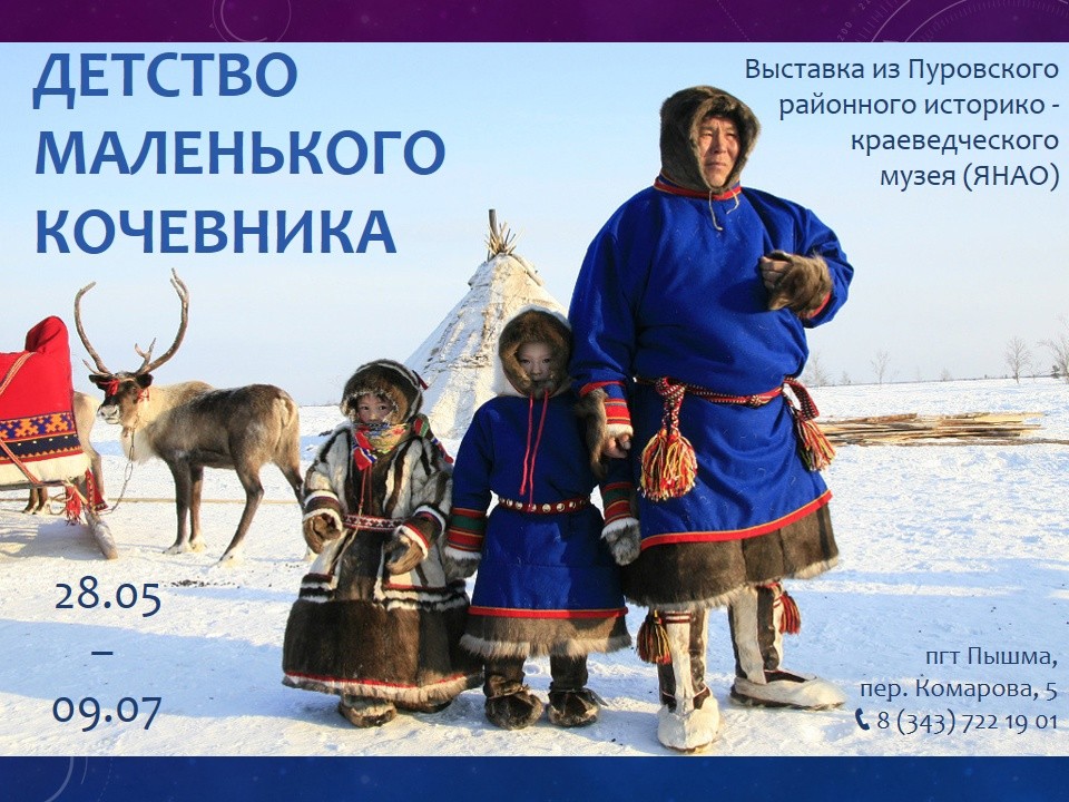 Выставка «Детство маленького кочевника» предлагает уникальную возможность узнать о жизни ненецких детей и понять, как кочевой образ жизни формирует их детство и идентичность познакомившись с экспонатами из фондов Пуровского районного историко-краеведческого музея.
