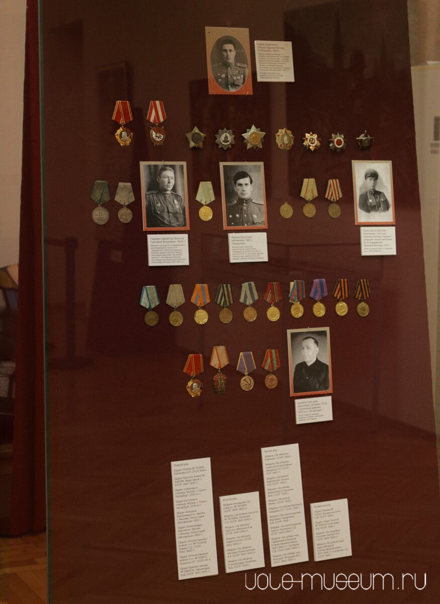 Важное место на выставке занимают истории наших земляков, героически сражавшихся на фронтах и трудившихся с высокой самоотдачей в тылу, приближая полный и окончательный разгром врага.