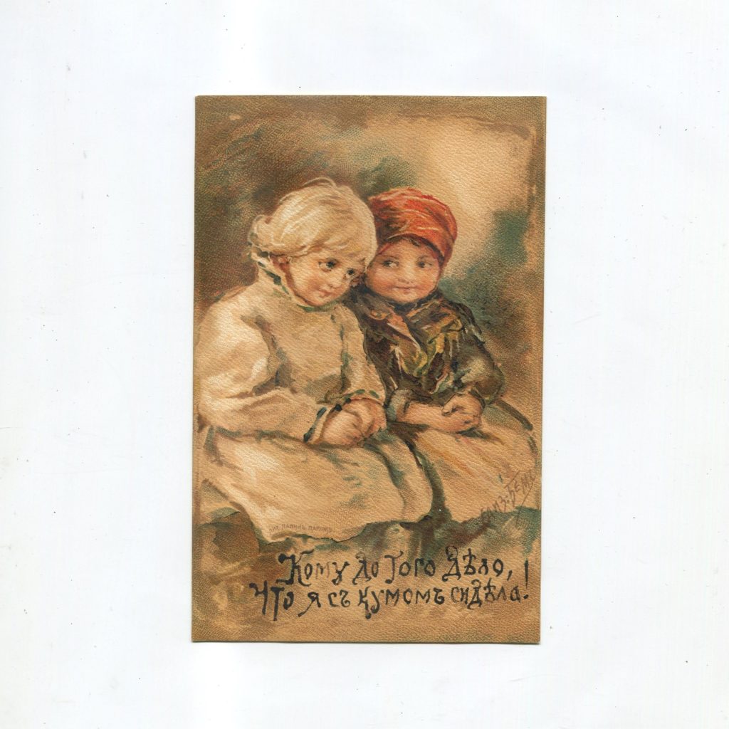 Кроме этого, Елизавета Бём сама делала подписи к открыткам, проявляя большую изобретательность. Тексты включали в себя элементы пасхальных песнопений, а также цитаты российских поэтов и любимые художницей пословицы и поговорки.
