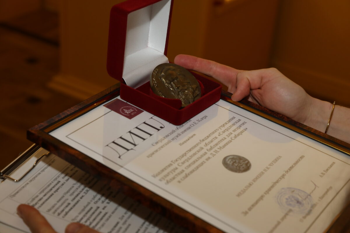 Медаль имени Наркиза Чупина за активную краеведческую деятельность присуждена коллективу Свердловской областной специальной библиотеки для незрячих и слабовидящих им. Д.Н. Мамина-Сибиряка.
