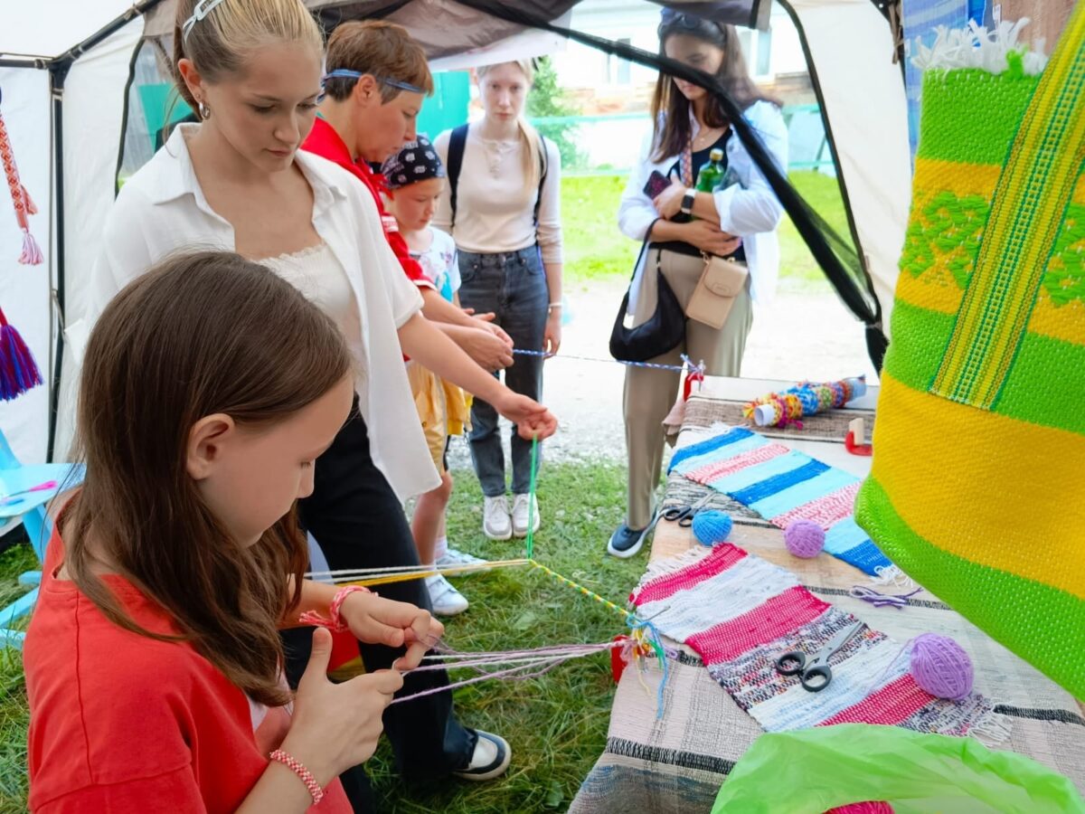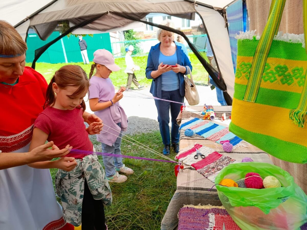 Одна из миссий Артинского исторического музея – возрождение утраченных народных промыслов и умений, поэтому по приглашению администрации Красноуфимского района сотрудники музея представили на фестивале выставку «Нить жизни» и проводили мастер-классы по ткачеству панно из трав (для взрослых) и плетению фенечек в технике дерганья (для детей).