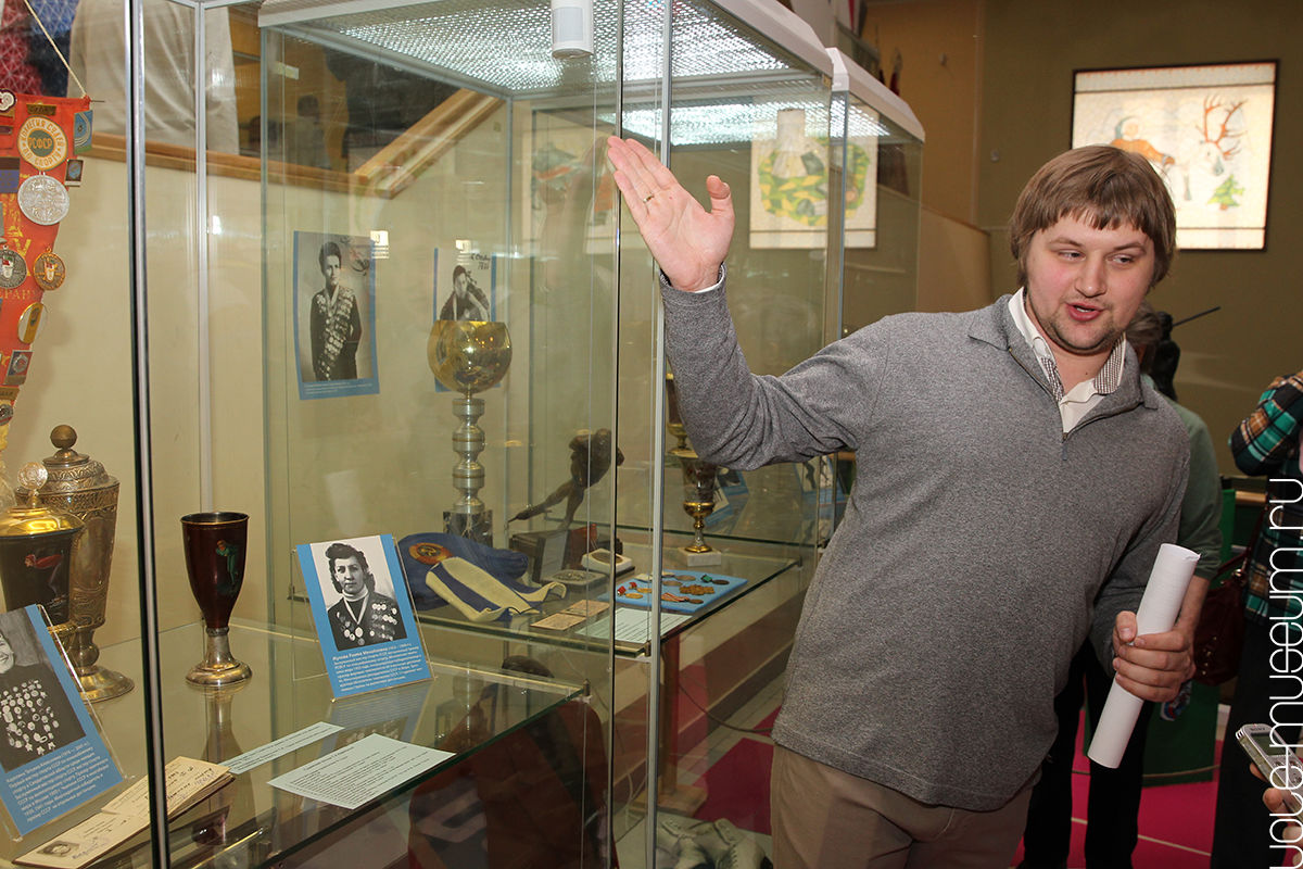 Первую экскурсию по выставке провел заведующий отделом истории СОКМ Александр Дмитриевич Фроленко. Приятным сюрпризом для гостей вернисажа стала возможность живого общения с легендами уральского спорта – сестрами Назмутдиновыми, Евгением Виноградским, Евгением Панченко, которые охотно рассказывали о своих личных вещах в музейных витринах и делились воспоминаниями о ярких страницах спортивной карьеры.