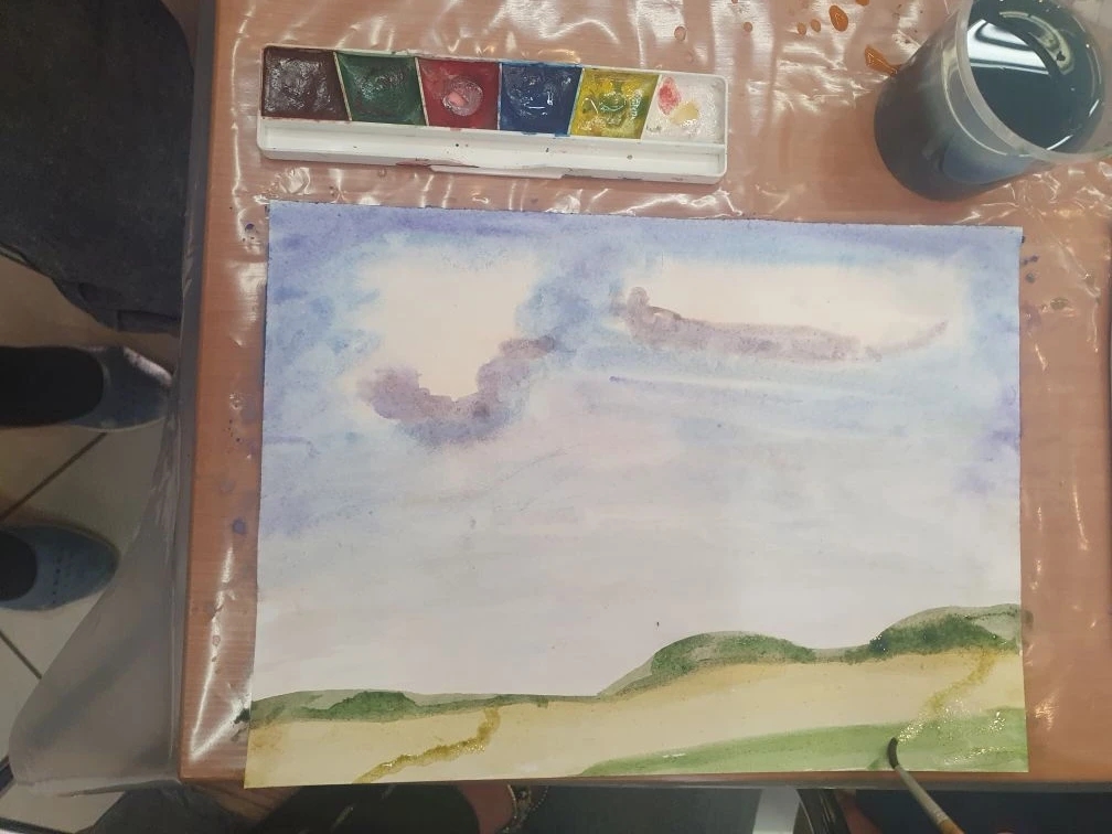 Темой мастер-класса стало написание неба в технике «по-сырому» акварельными красками. Участники под руководством опытного наставника осваивали тонкости этой капризной, но невероятно живописной техники, позволяющей передать воздушность, глубину и мягкие переходы цвета.