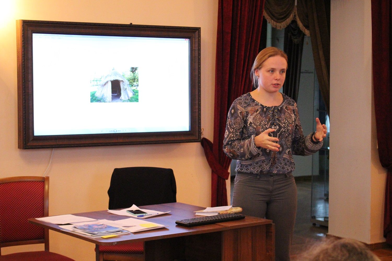 Научный сотрудник отдела древней истории народов Урала Е.Н. Гончарова рассказала об ежегодных летних поездках в необычный музейный комплекс под открытым небом и представила перспективы использования полученного в нем опыта в работе отдела ДИНУ (в частности, в разработке и проведении интерактивных программ в пространстве археологической экспозиции, использовании привезенного из Ростовского области каменного материала и копий древних орудий труда на мастер-классах в Музее истории и археологии Урала).