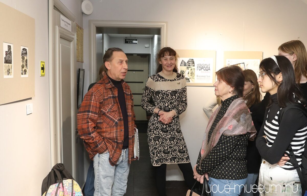 Владимир Валентинович познакомил гостей вернисажа с техникой и историей создания офортов, а также удивительными сюжетами постмодернистского произведения «Невидимые города» итальянского писателя Итало Кальвино.