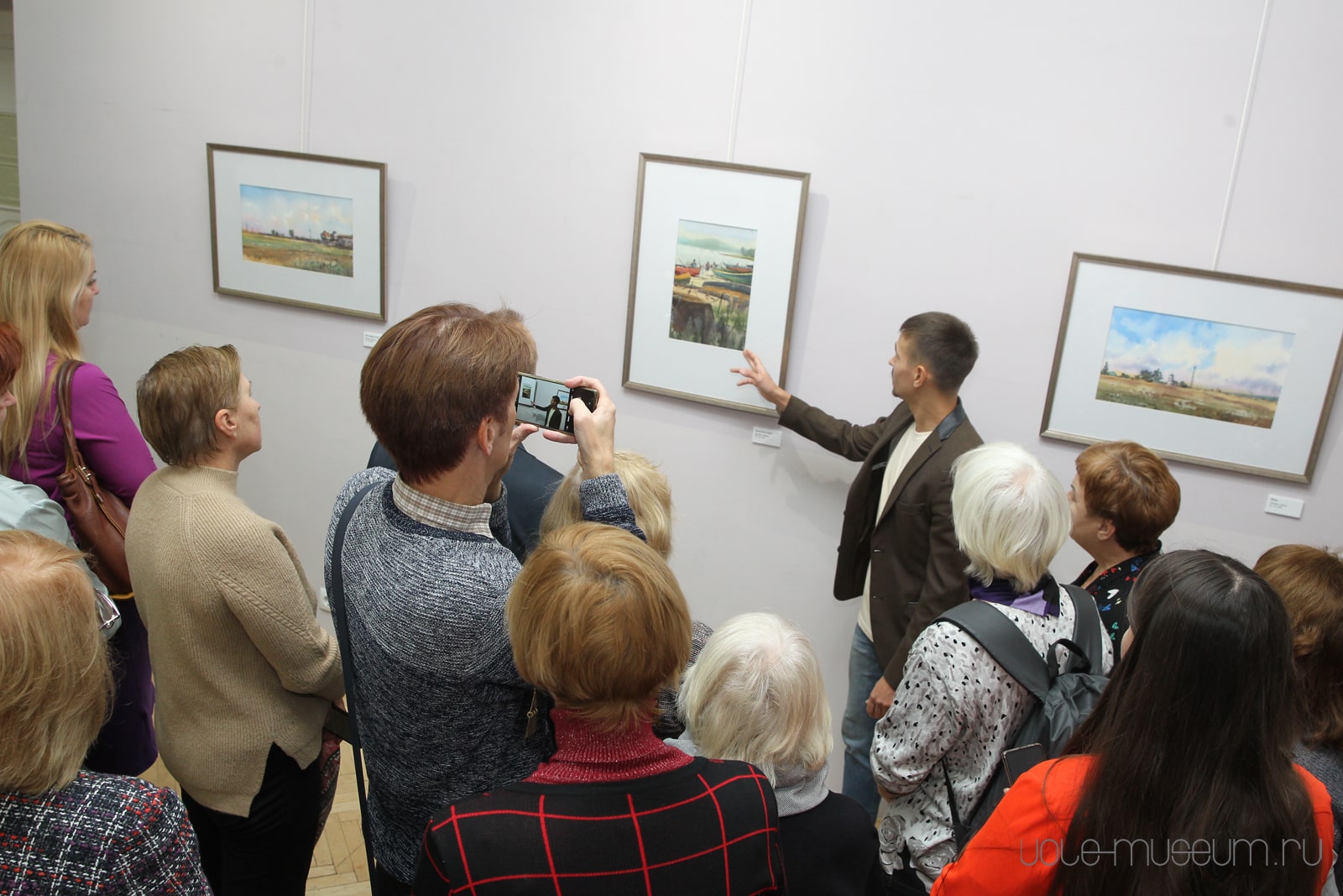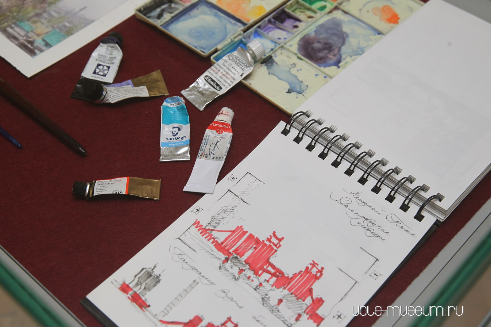 Сам художник поделился замыслом этой выставки: «Керчь и Урал. Казалось бы, такие разные места, такая разная природа. Но, если присмотреться внимательнее, сколько можно найти общего между ними. Главная идея этой выставки заключается в том, чтобы показать дружбу двух этих регионов. Сказать, что жизнь людей и их взгляды на то, что вокруг, похожи». Роман провел авторскую экскурсию по своим работам и приоткрыл закулисье их создания: в витринах выставки он представил блокноты с зарисовками, скетчбуки и краски.