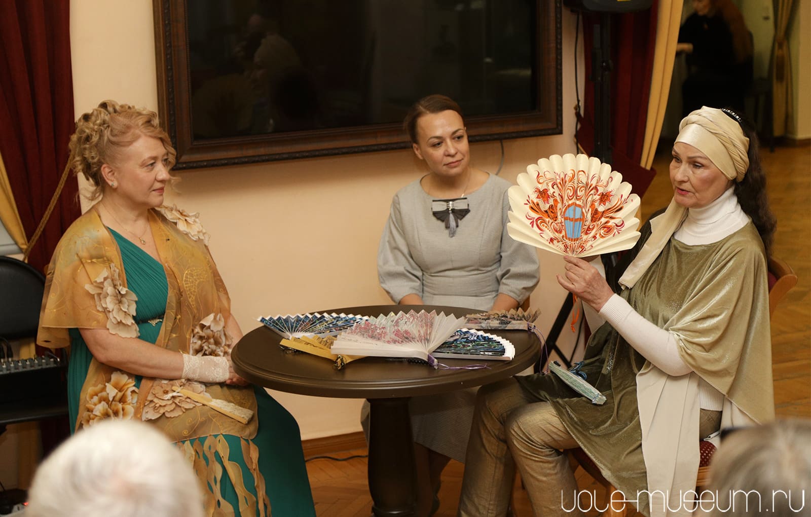 Пятничный вернисаж в Доме Поклевских-Козелл прошел в формате званого вечера в гостиной дворянского особняка конца XIX века. Так необычно 9 декабря Уральская художественная гильдия и Свердловский областной краеведческий музей имени О. Е. Клера открыли выставку «О веерах с любовью. История и современность».