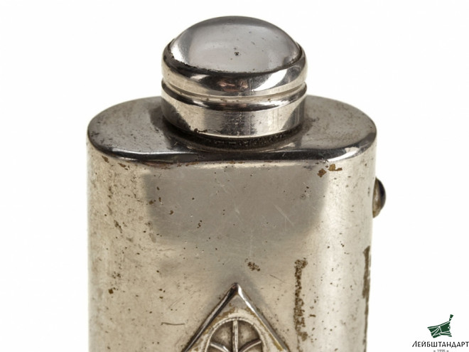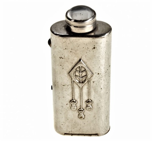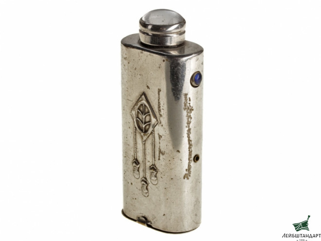 Латунный никелированный корпус украшен рельефным орнаментом в стиле «модерн»; в верхней части корпуса — линза для увеличения яркости освещения. Кнопка со вставкой из синего стекла — огранка «кабошон». Фонарик исполнен исключительно качественно. В дальнейшем электрический фонарь изменял форму и размеры несколько раз, но основная идея ручного фонаря с удобным корпусом, куда устанавливались электрические батареи, осталась прежней, так как, гораздо удобнее держать фонарь в руке и направлять его яркий луч вдаль.