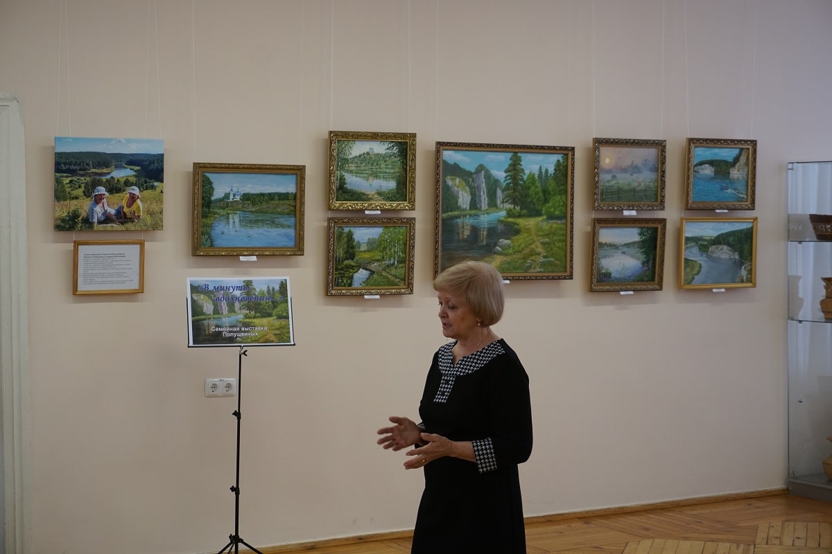 Эта выставка – именно семейная: свои картины представили сестры-близнецы Елена Геннадьевна Томилова и Надежда Геннадьевна Сулицина (в девичестве Полушкины), а изделиями прикладного искусства в разных техниках украсила витрины концертно-выставочного зала музея двоюродная сестра Полушкиных – Елена Викторовна Стремина.