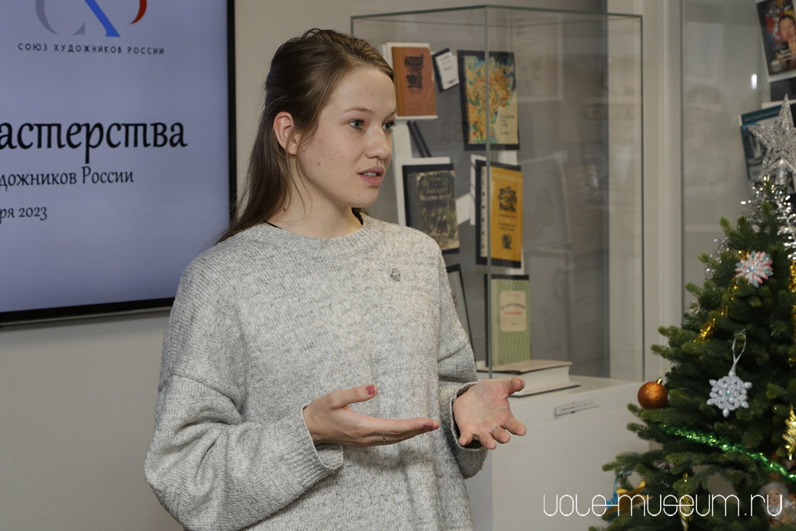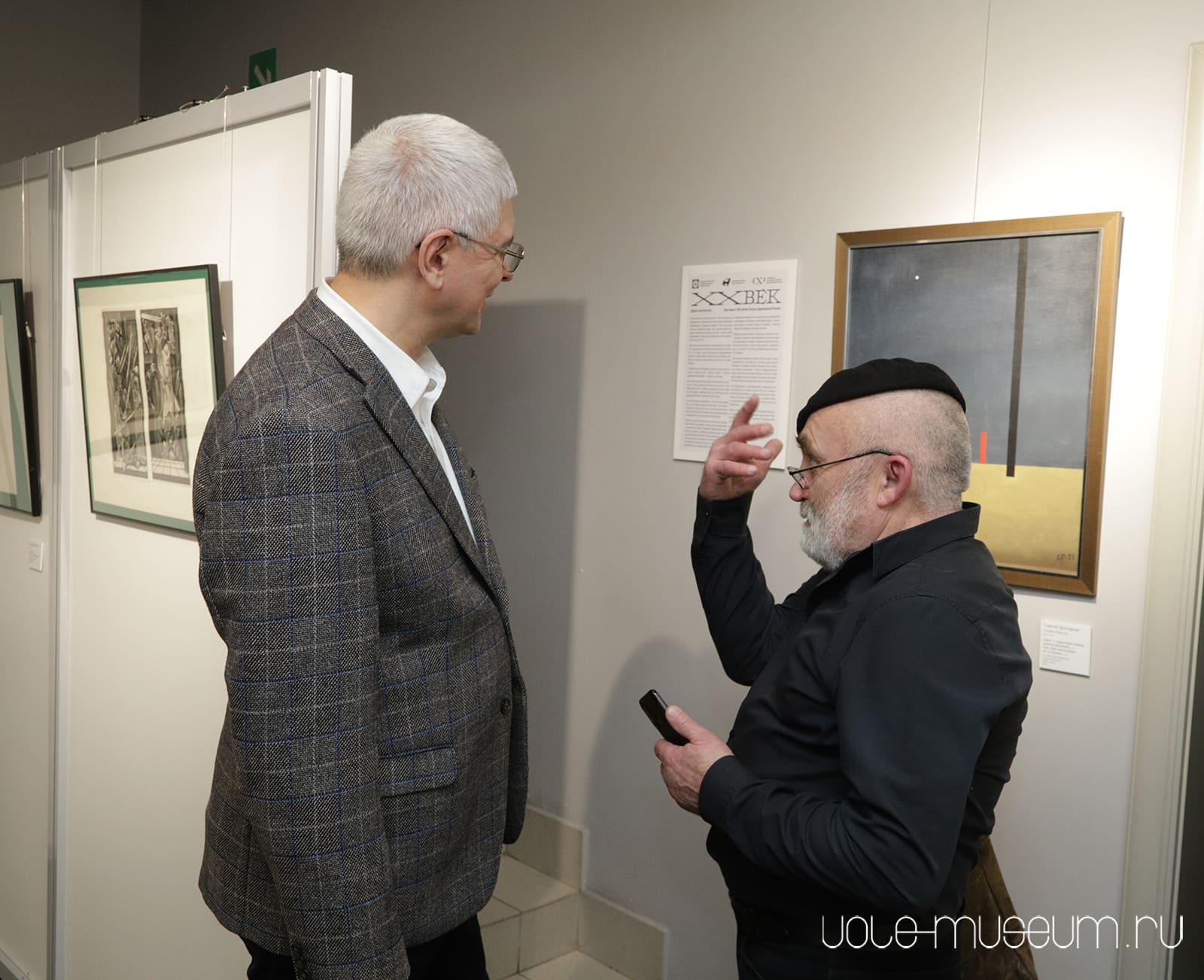 Кураторы выставки, научные сотрудники Александр Мальцев и Ирина Баранова рассказали гостям о задумке выставки, раскрыли основные принципы, по которым отбирали работы и строили экспозицию.