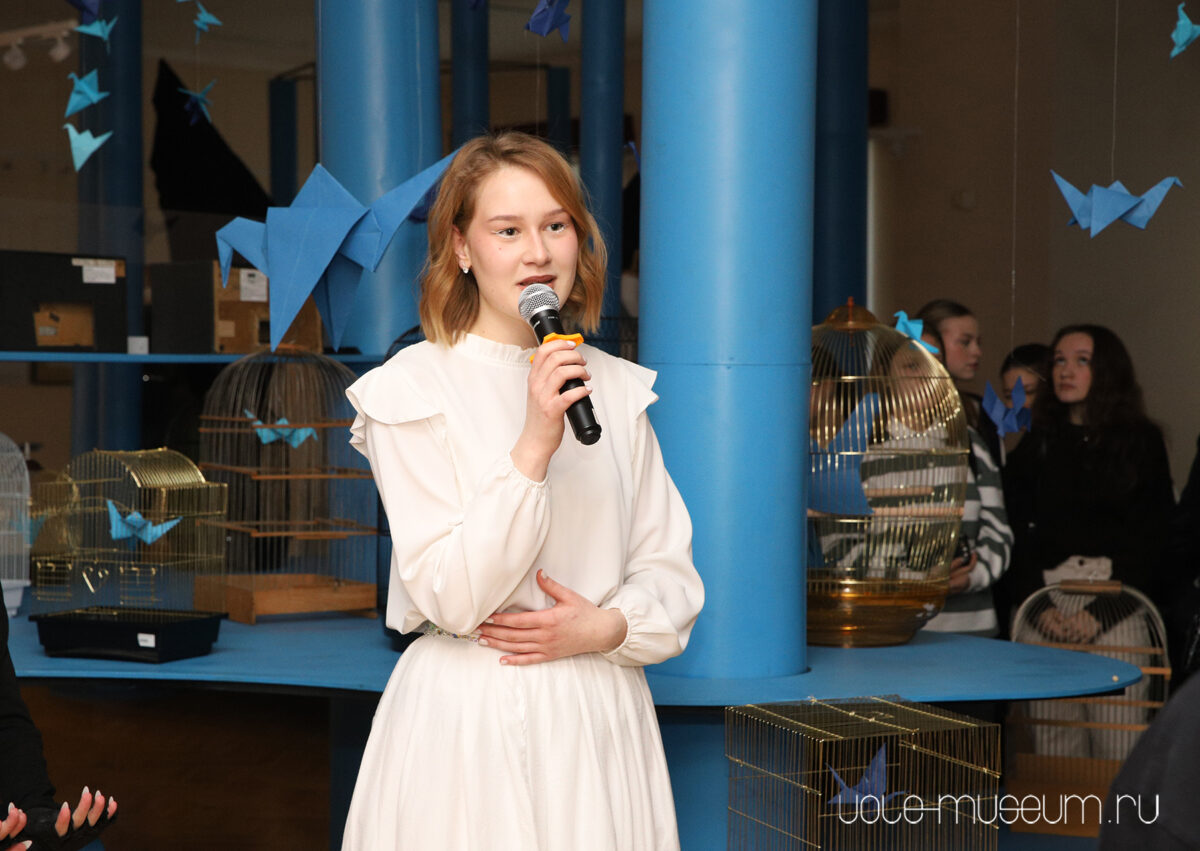 21 ноября студенты Свердловского областного педагогического колледжа организовали и провели иммерсивную прогулку по выставке «В поисках синей птицы». Студенты стали проводниками для зрителей в волшебный мир Синей птицы. Театрализация начиналась с холла МВЦ «Дом Поклевских-Козелл», где брат и сестра Тильтиль и Митиль встретили гостей.В залах уже ждали Кошка и Пёс, которые повествовали о своих опасениях и позициях. Но их разговор был прерван Душой Света. Душа Света-стала светлым проводником в новую станцию для наших гостей.