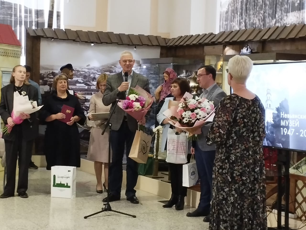 Торжественное мероприятие в честь юбилея развернулось в Музее истории Невьянского края. Коллектив Невьянского музея поздравили Заместитель Губернатора Свердловской области Павел Креков, Заместитель Министра культуры Свердловской области Юлия Прыткова, Глава Невьянского городского округа Александр Берчук, Председатель Думы Невьянского городского округа Любовь Замятина, Епископ Нижнетагильский и Невьянский Феодосий, представители Международного Демидовского фонда.