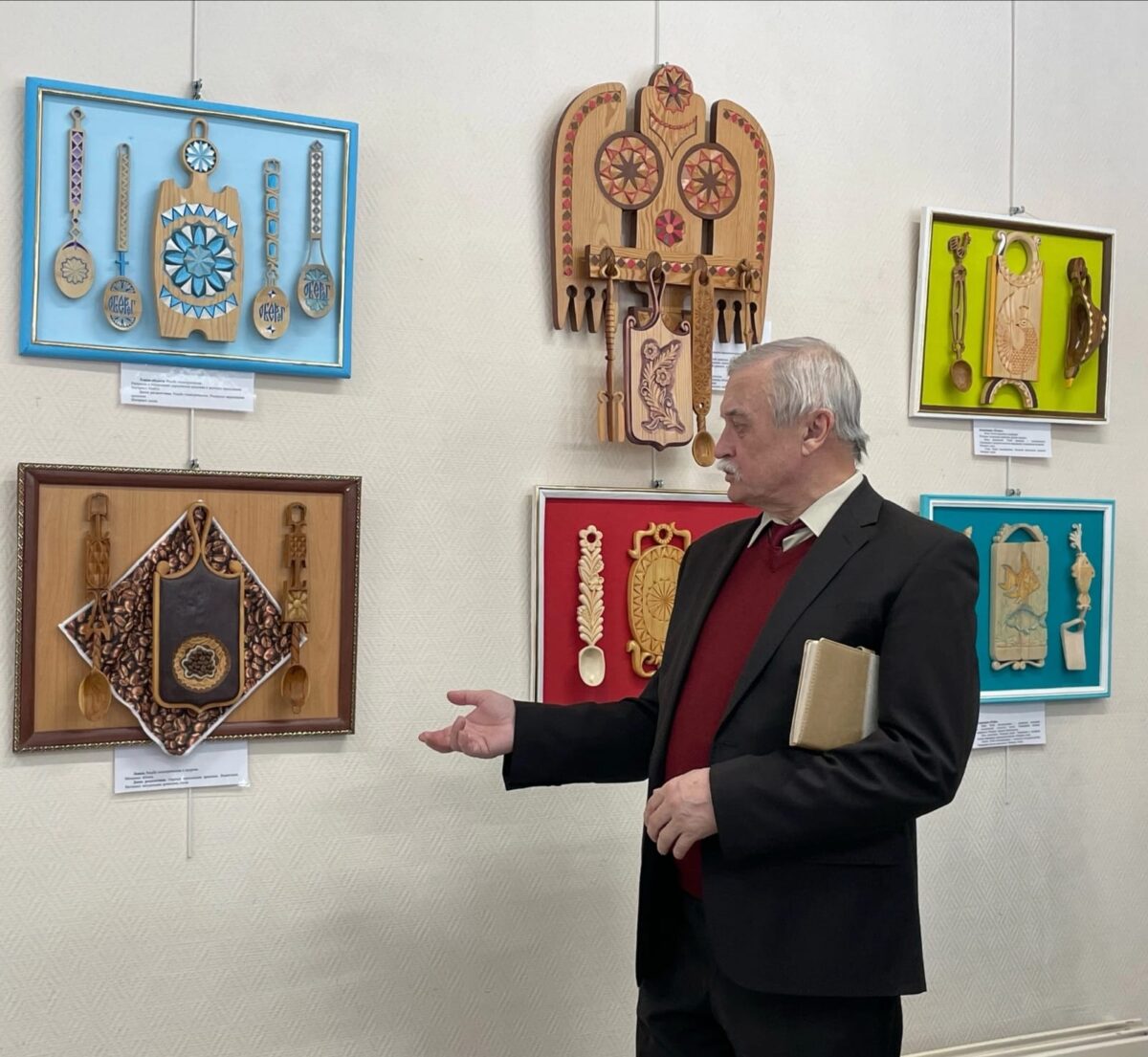 На выставке «Хороша ложка к обеду» – изделия асбестовского мастера резьбы по дереву Владимира Кочурова. С ним Асбестовский музей сотрудничает уже не впервые, в том числе как с поэтом: Владимир Валентинович – член городского поэтического клуба «Белая нить». Художественный проект Владимира Кочурова музей представил впервые.