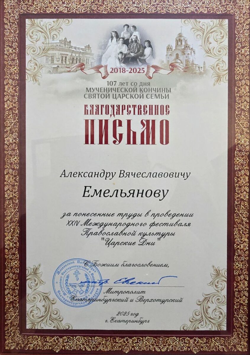2 декабря 2025 г. в день 200-летия со дня официальной даты ухода Государя Императора Александра I в Храме-Памятнике на Крови был отслужен молебен святому праведному Феодору Томскому и святым Царственным Страстотерпцам, который совершил протоиерей Максим Миняйло.