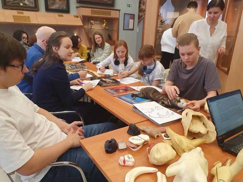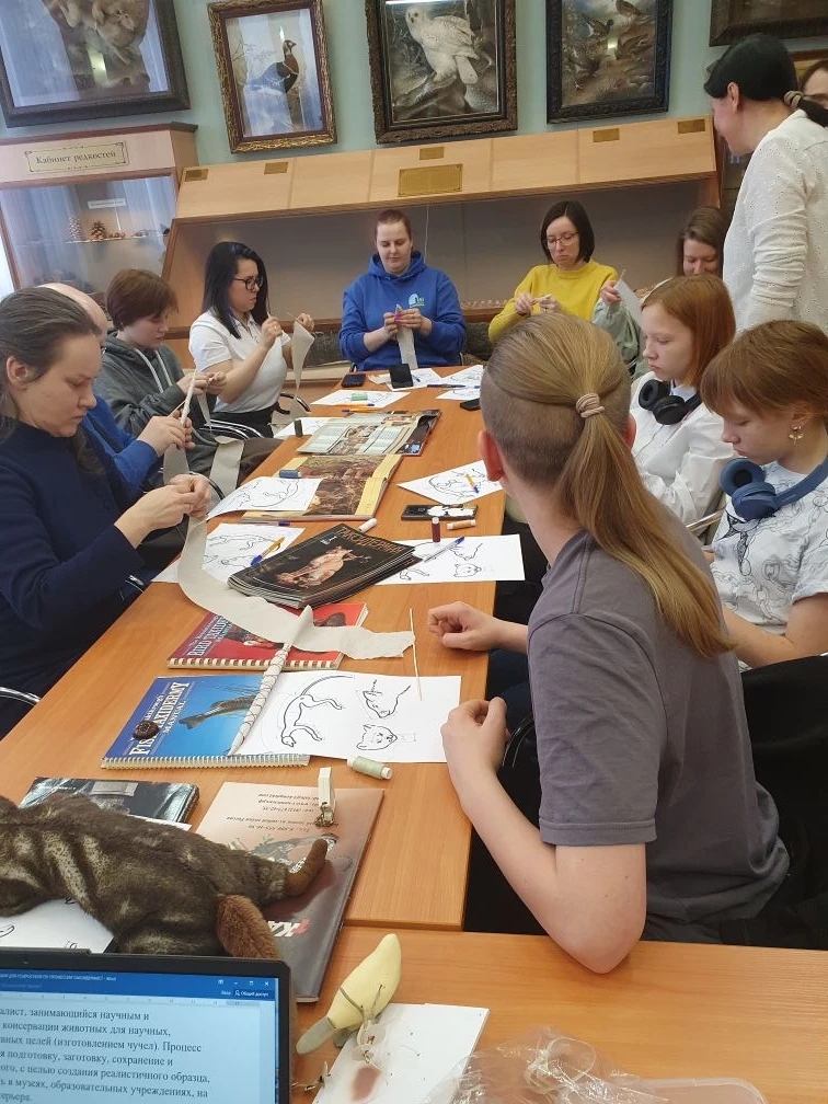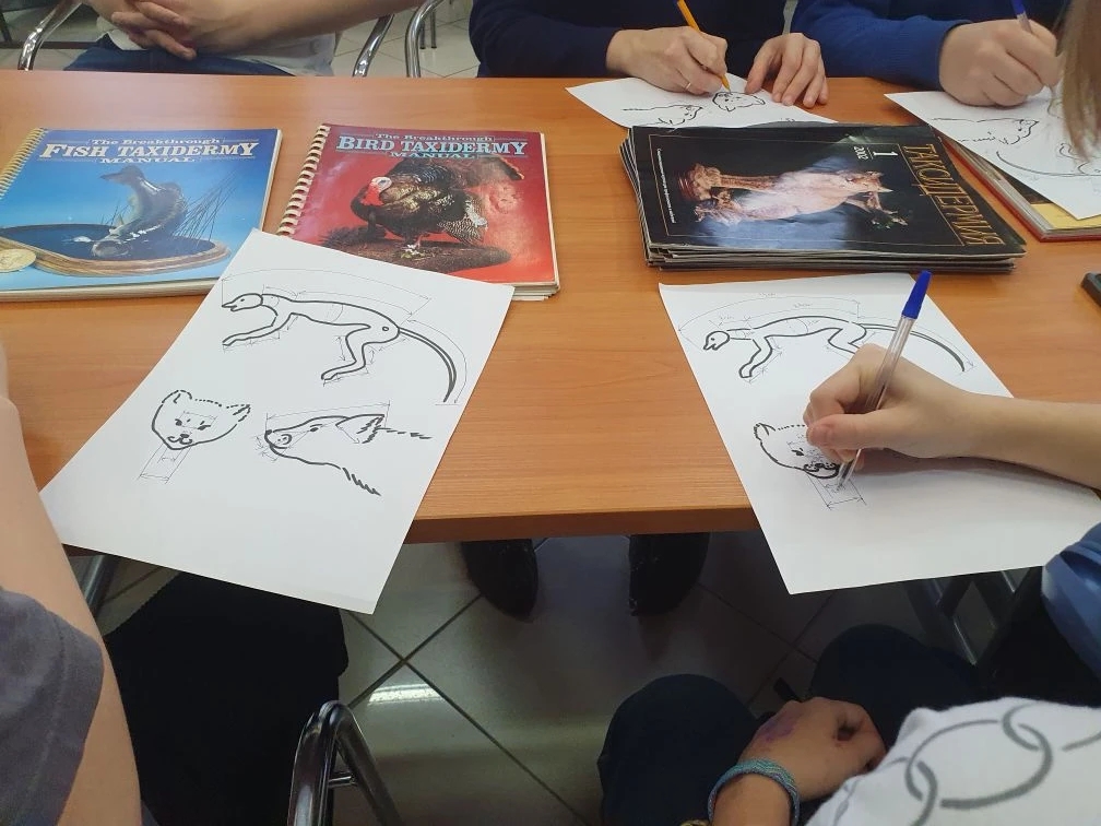 Занятие провела старший научный сотрудник музея Ирина Борисовна Гурина. Она рассказала об истории таксидермии — от первых опытов до современных технологий, позволяющих добиваться удивительной реалистичности в изготовлении чучел. Участники узнали о ключевых этапах работы: обработке шкуры, моделировании основы, создании манекена и финальной сборке экспоната.