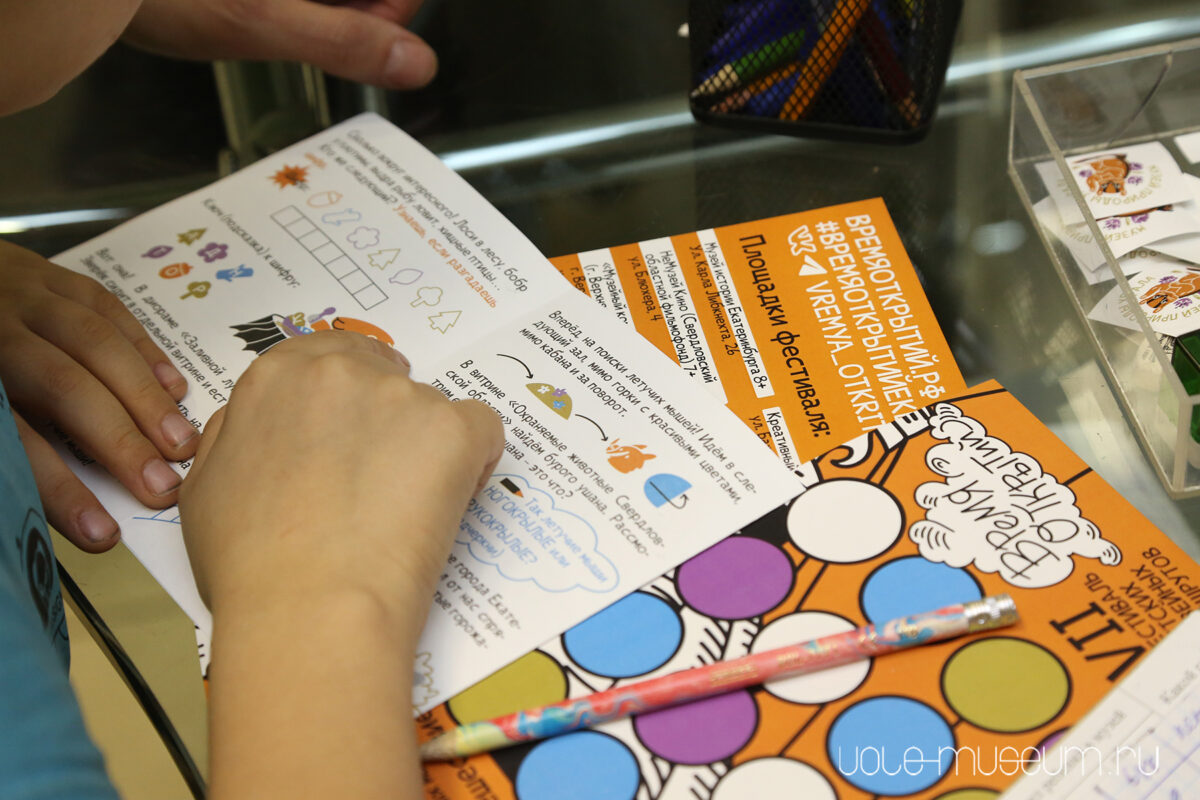 Фестиваль ежегодно проводится в дни осенних каникул и адресован детям, подросткам и их родителям. В Музее природы Урала вместе с бурундуком Буриком нужно было разыскать зверей и птиц, живущих в Екатеринбурге. В Музее истории и археологии Урала ребята искали спрятанные в залах буквы, чтобы составить из них потерянное имя местного робота-помощника. В Доме Поклевских-Козелл участники фестиваля «Время открытий» прошлись по следам знаменитых мхатовцев по выставке «В поисках синей птицы. Линия фантастики в МХТ» и попробовали себя в роли костюмера, гримёра, художника по свету и композитора.